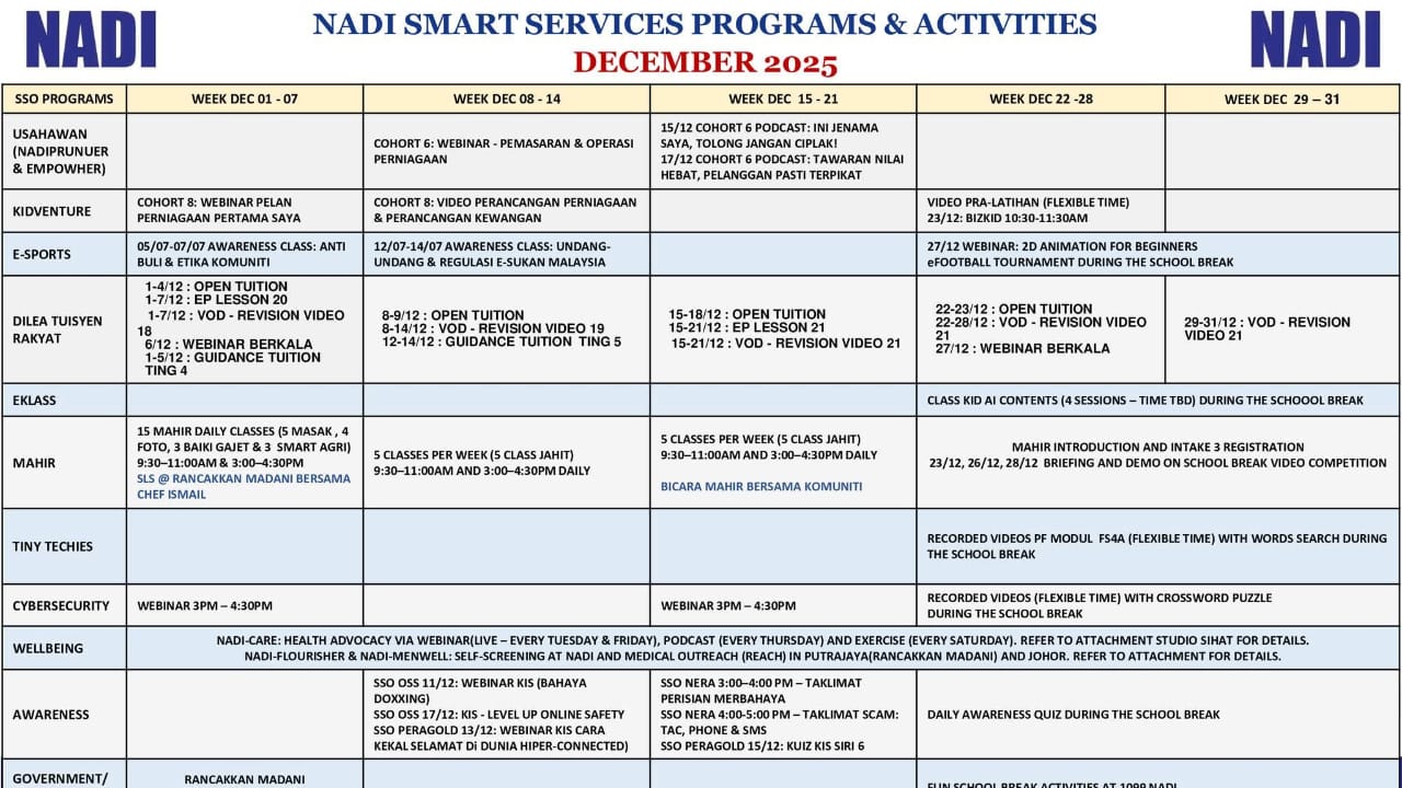 🎉 JOM SERTAI PROGRAM NADI! 🎉Event / Program menarik menanti anda dari 04 – 07 Disember 2025 dengan pelbagai aktiviti seperti: 📘 DILEA – Tuition, Webinar & VOD Revision💚 WELLBEING – Podcast, Fizikal & Kesihatan🛡️ CYBERSECURITY – Ancaman Kamera di […]