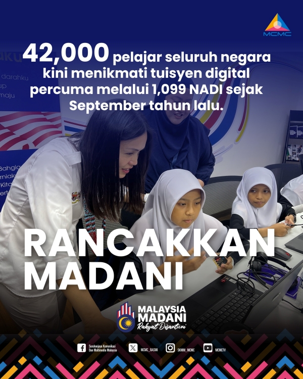 Seramai 42,000 pelajar sekolah rendah & menengah di seluruh negara telah menikmati manfaat tuisyen digital percuma melalui Pusat Sebaran Maklumat Nasional (NADI) sejak September tahun lalu.
